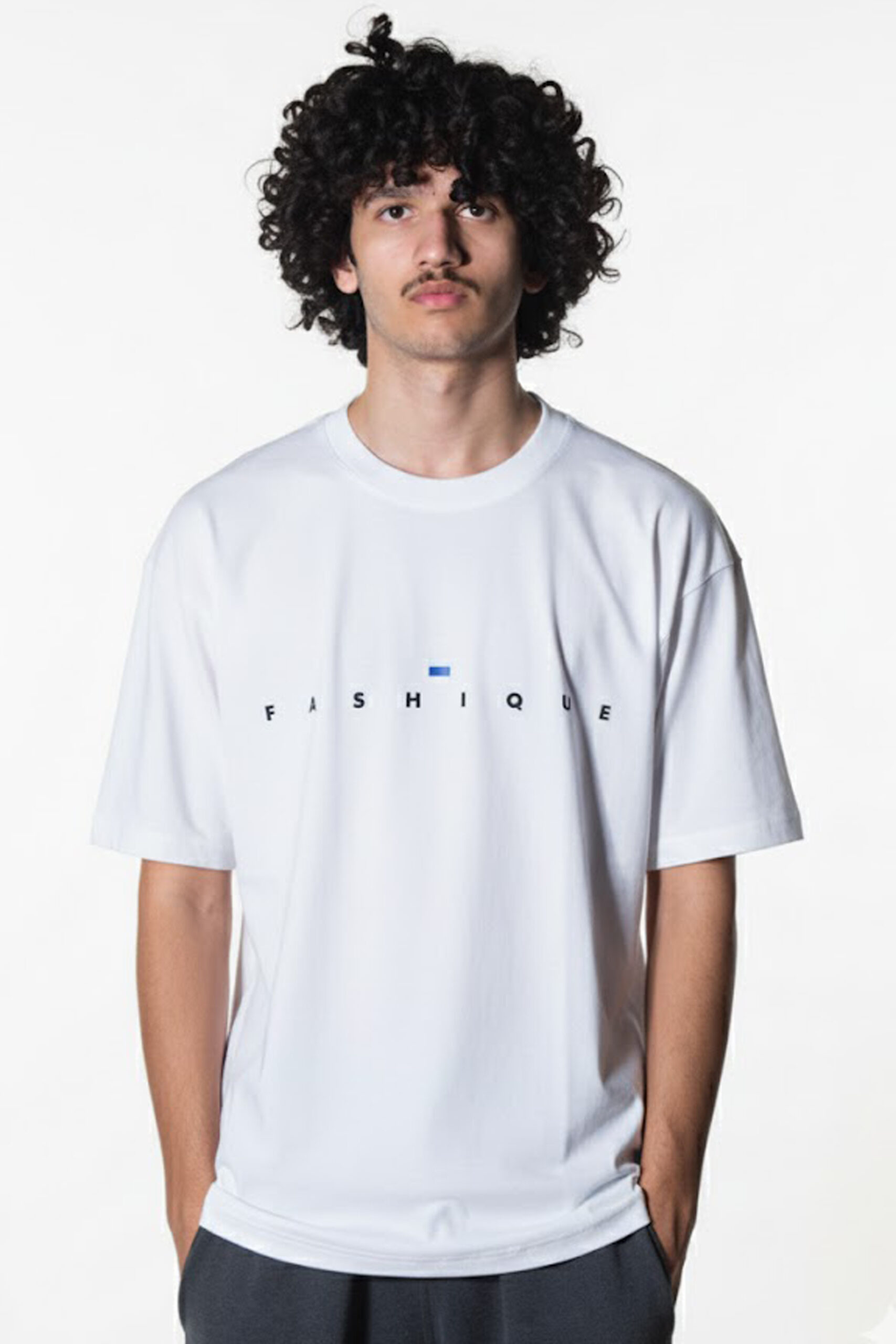 This t-shirt is a versatile and timeless piece perfect for daily wear. Made from what appears to be a soft, breathable cotton blend, it offers a comfortable and relaxed fit. The brand name, FASHIQUE, is printed in a clean, sans-serif font across the chest, creating a subtle yet stylish focal point.